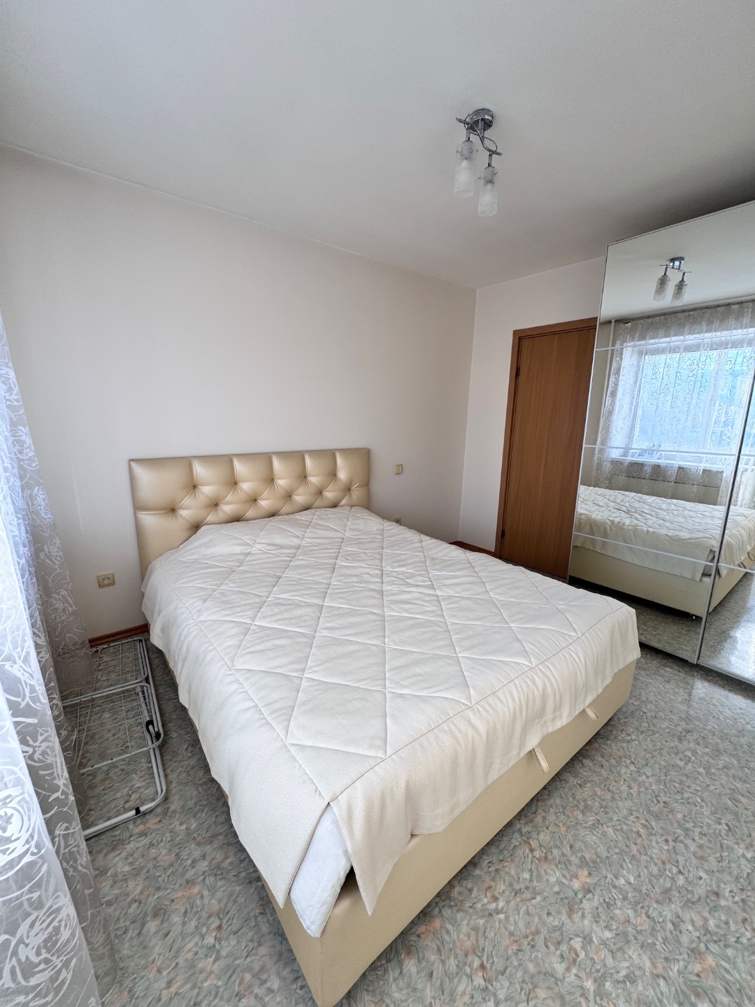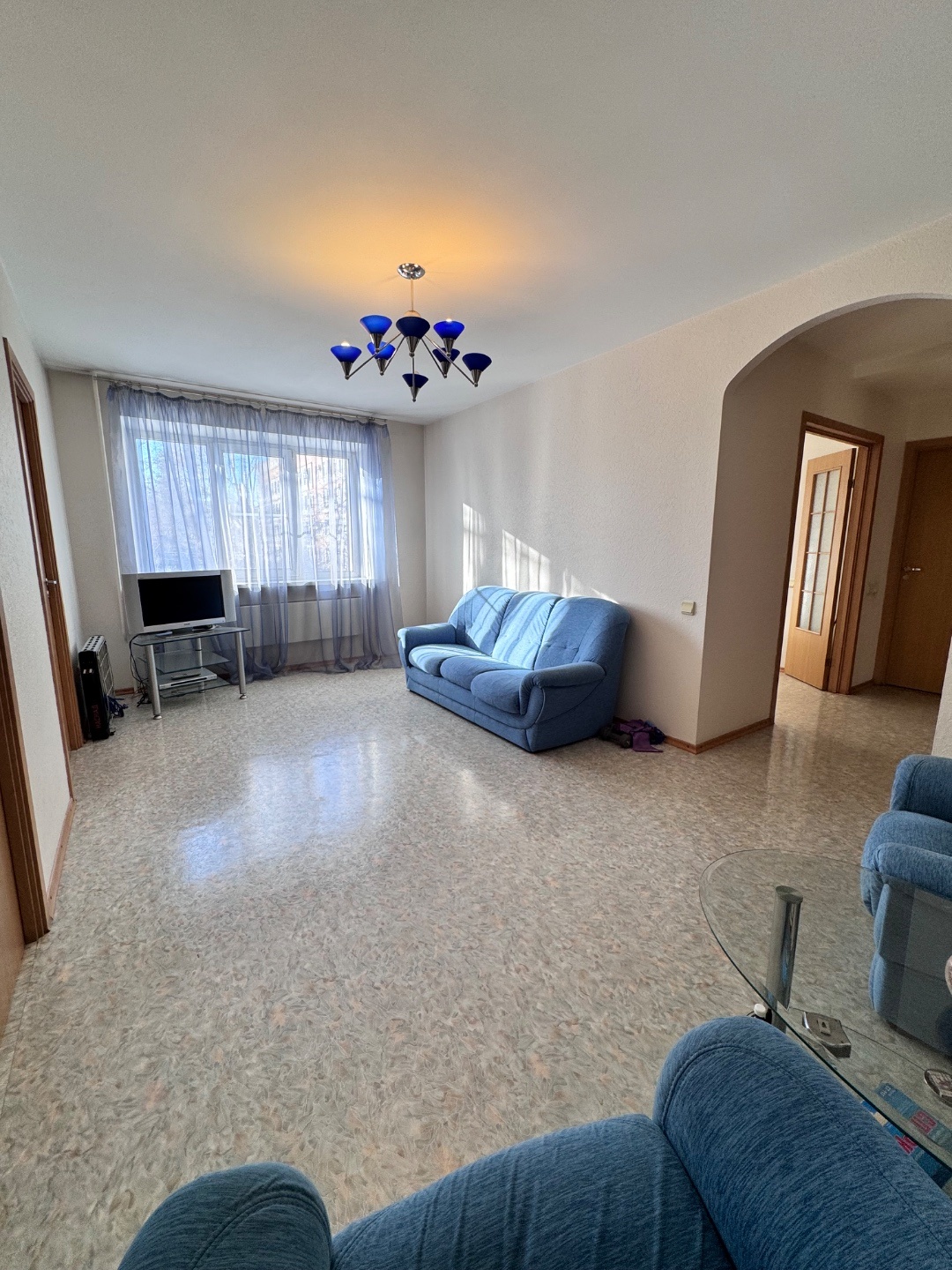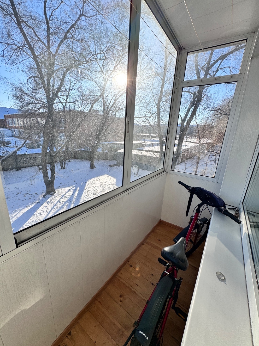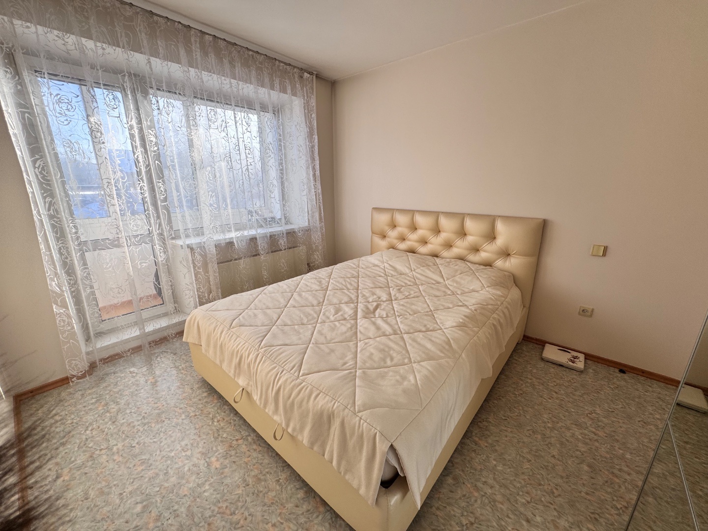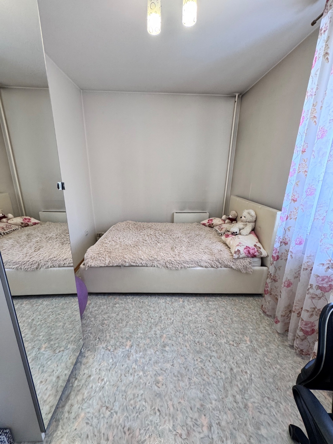 Выполнен качественный капитальный ремонт: заменена электропроводка и сантехника, полы залиты и выровнены, уложен линолеум, в санузле — кафельная плитка. Установлены современные радиаторы. Балкон застеклён и обшит.