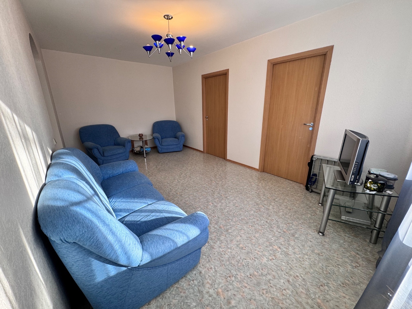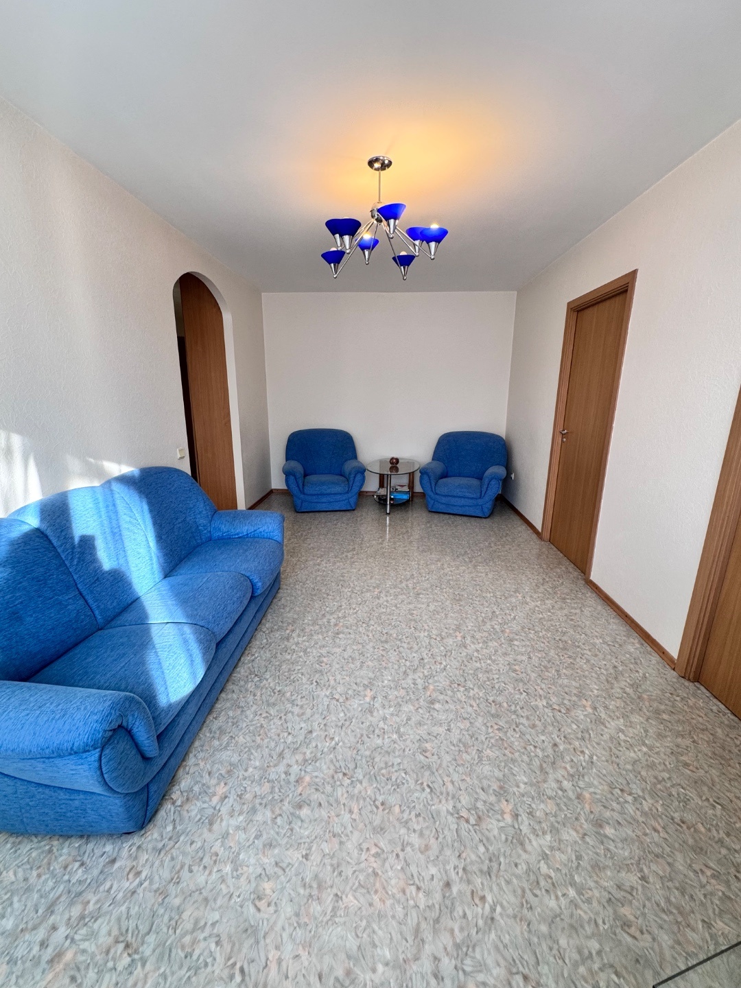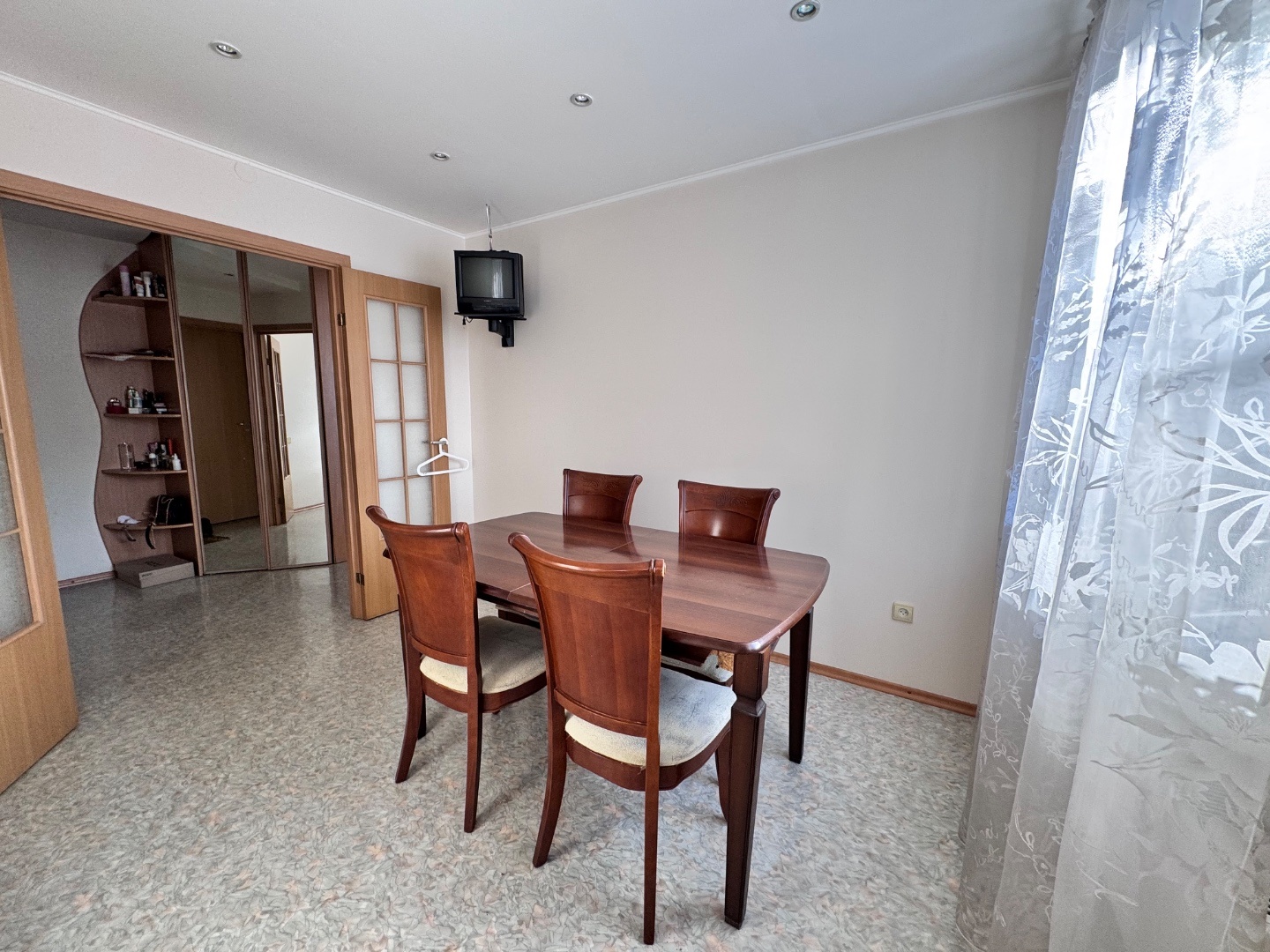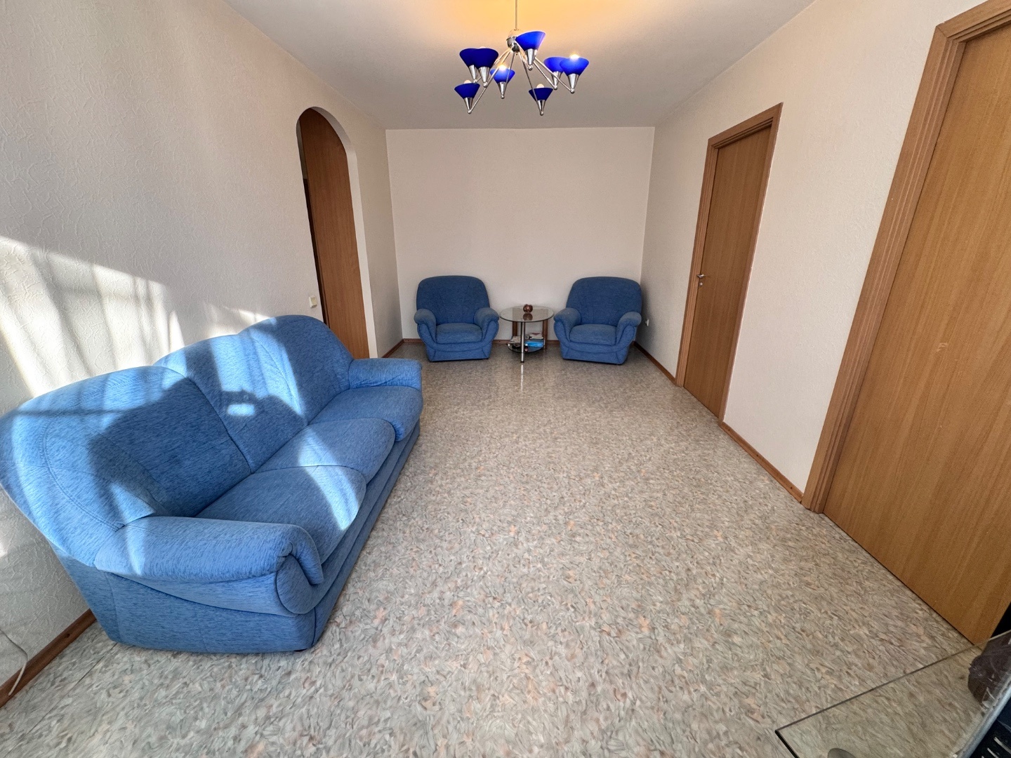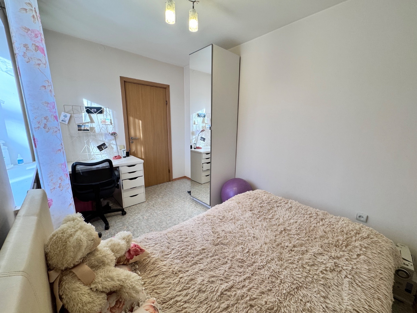 Выполнен качественный капитальный ремонт: заменена электропроводка и сантехника, полы залиты и выровнены, уложен линолеум, в санузле — кафельная плитка. Установлены современные радиаторы. Балкон застеклён и обшит.