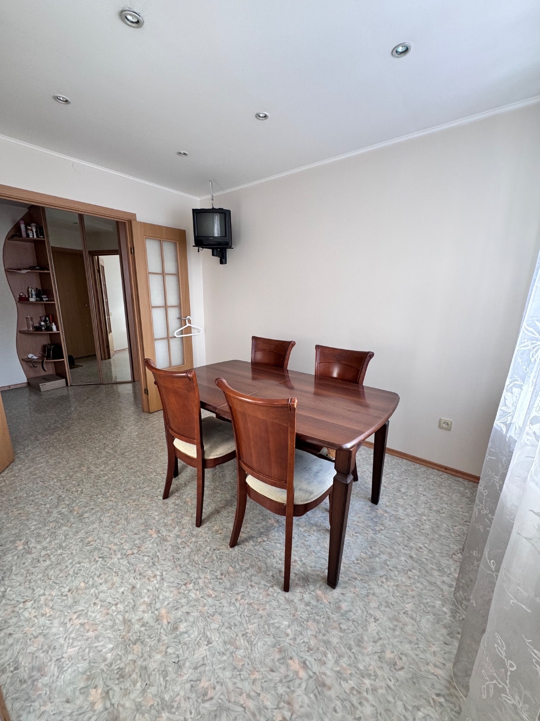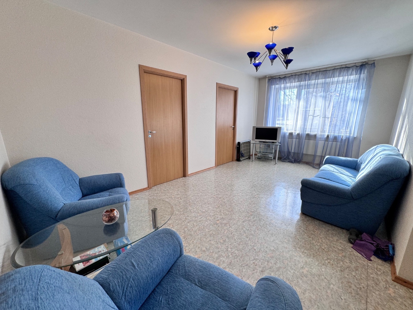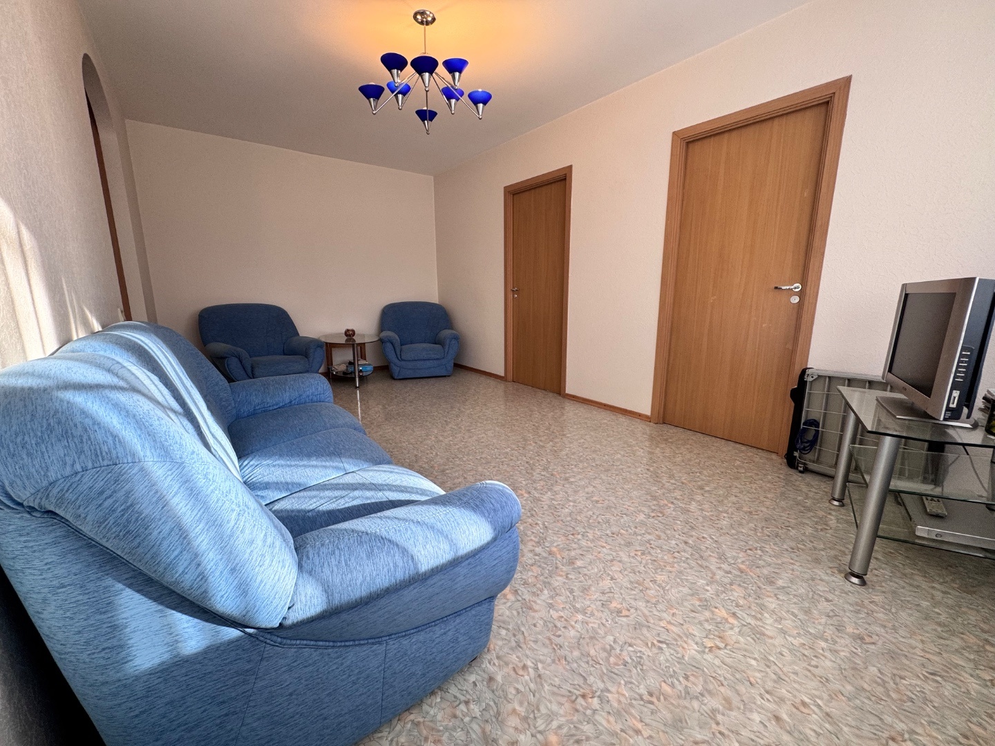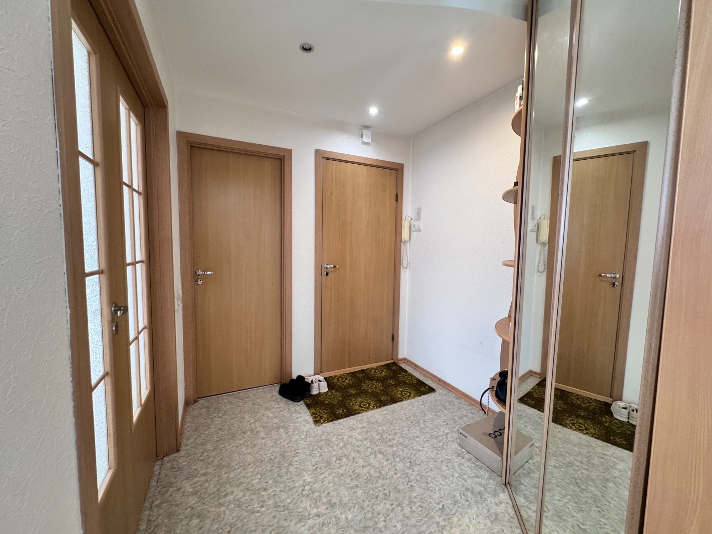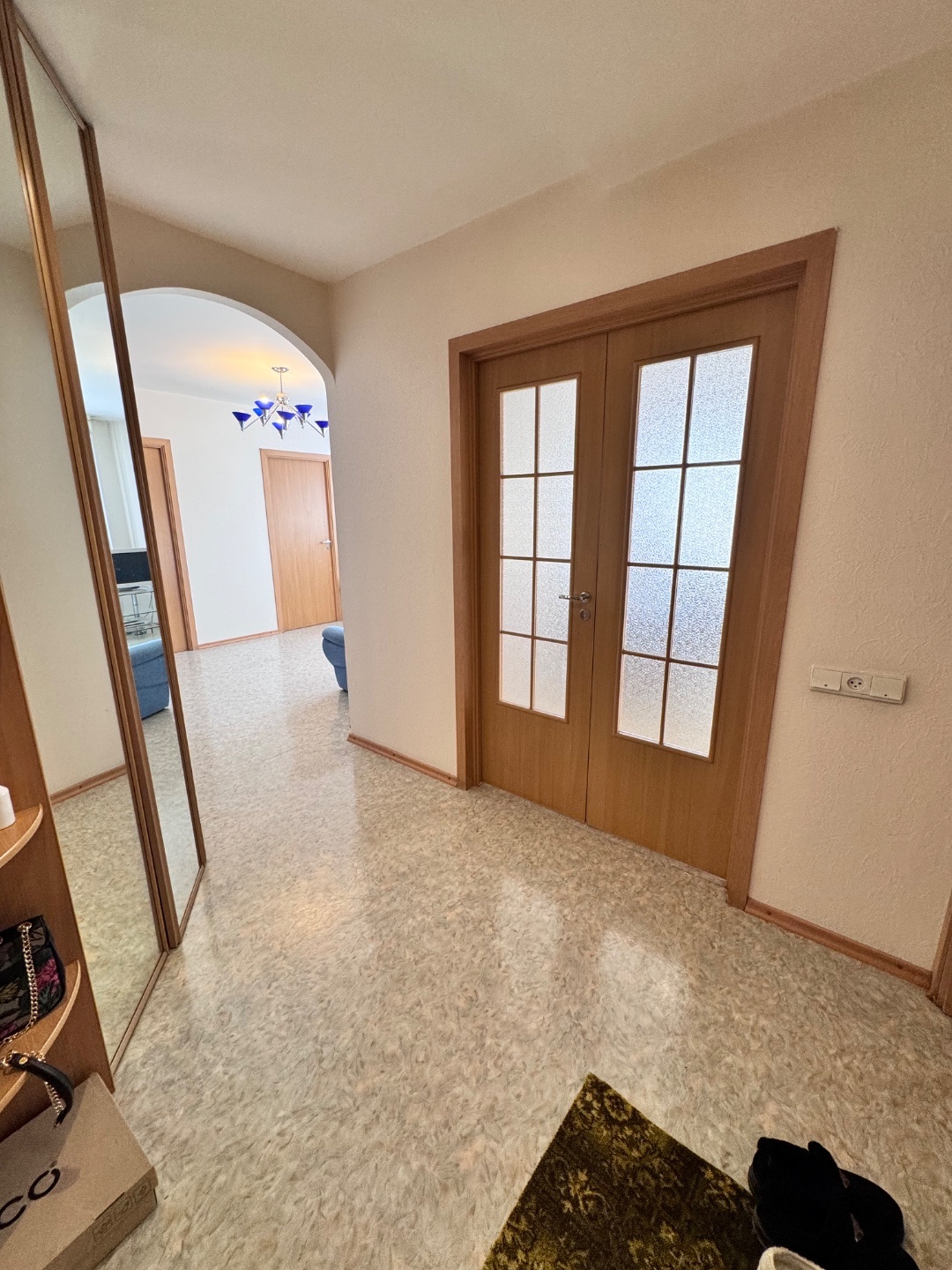 Выполнен качественный капитальный ремонт: заменена электропроводка и сантехника, полы залиты и выровнены, уложен линолеум, в санузле — кафельная плитка. Установлены современные радиаторы. Балкон застеклён и обшит.