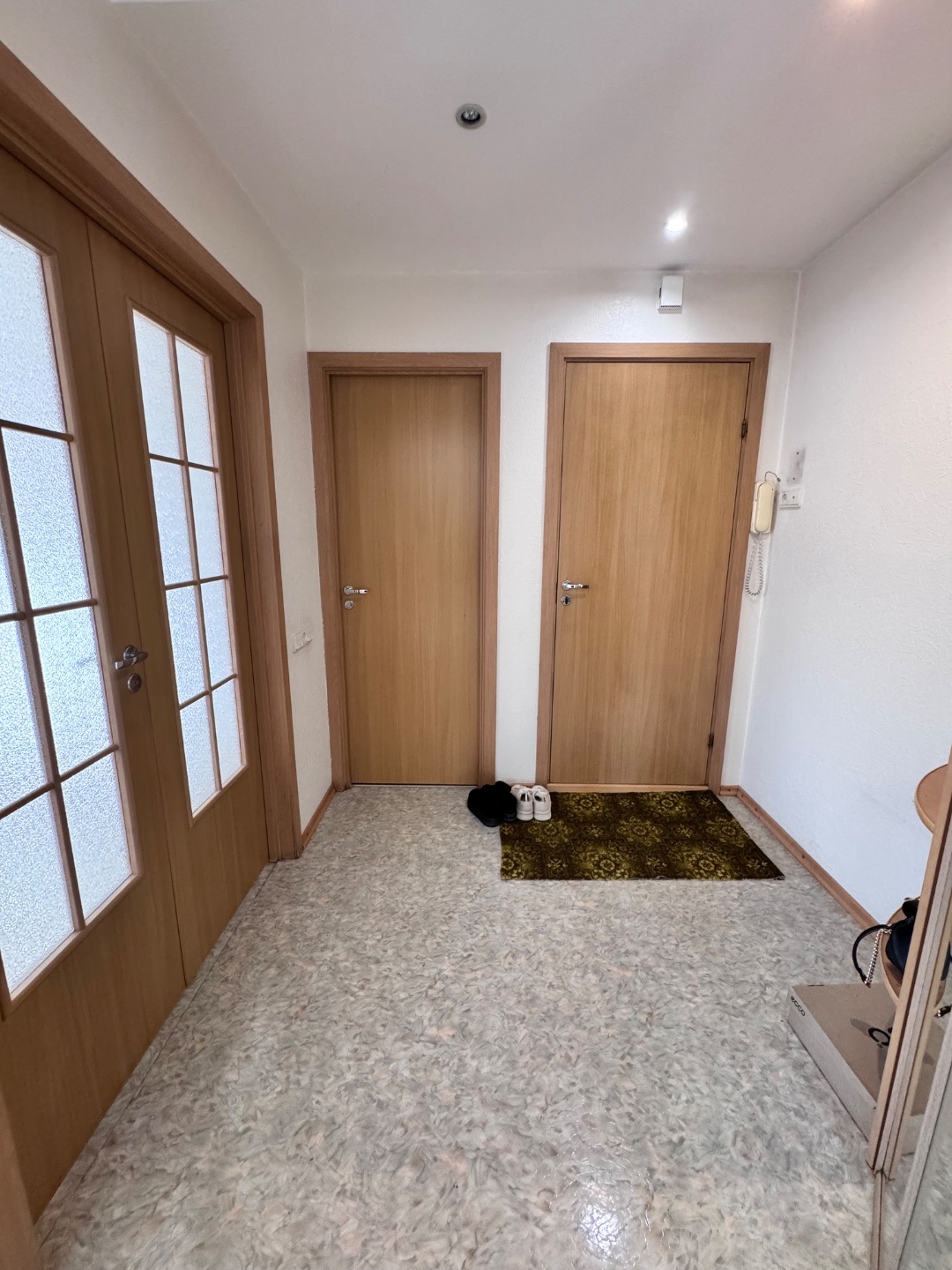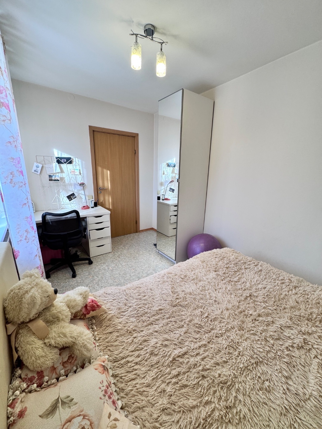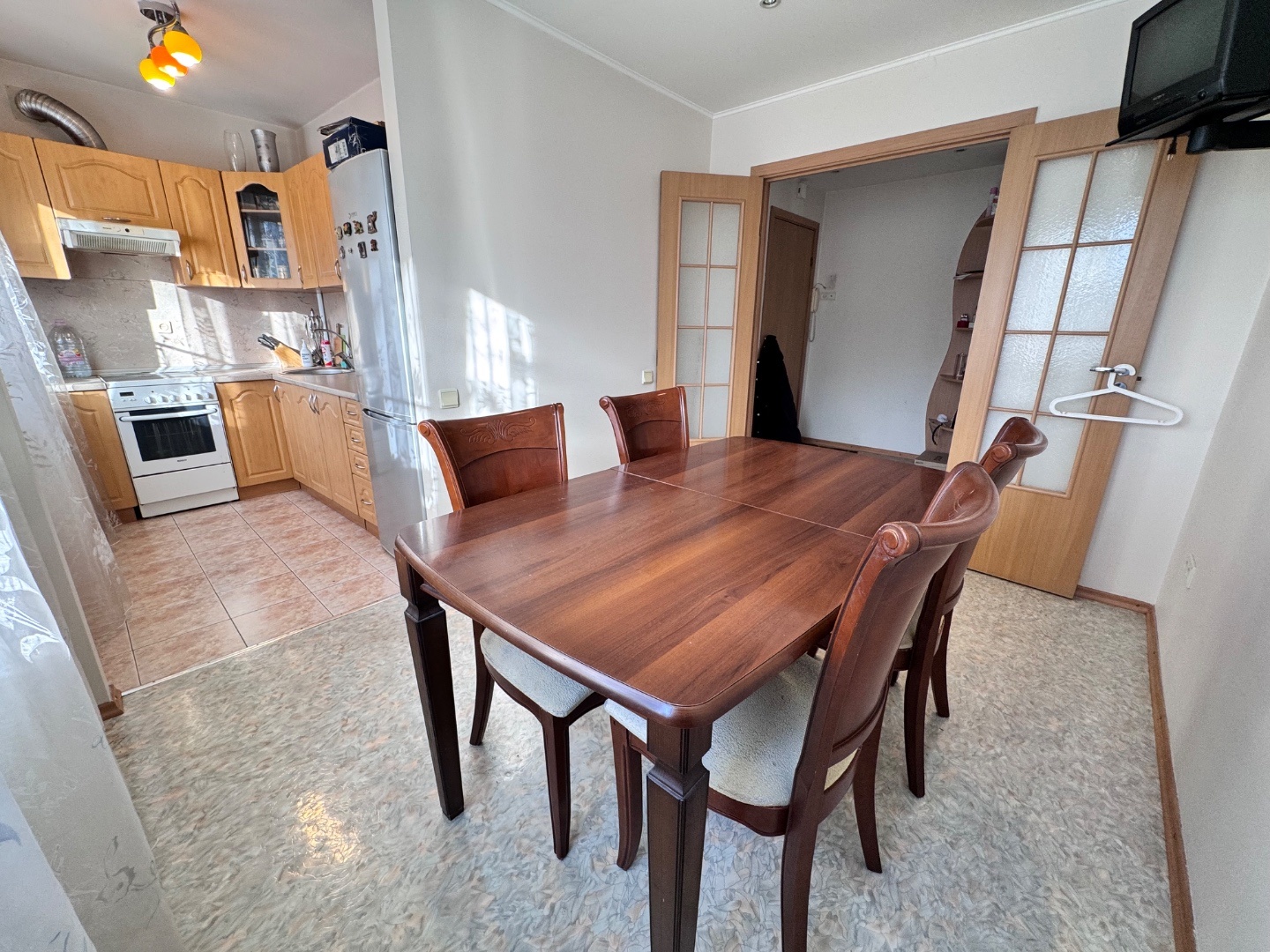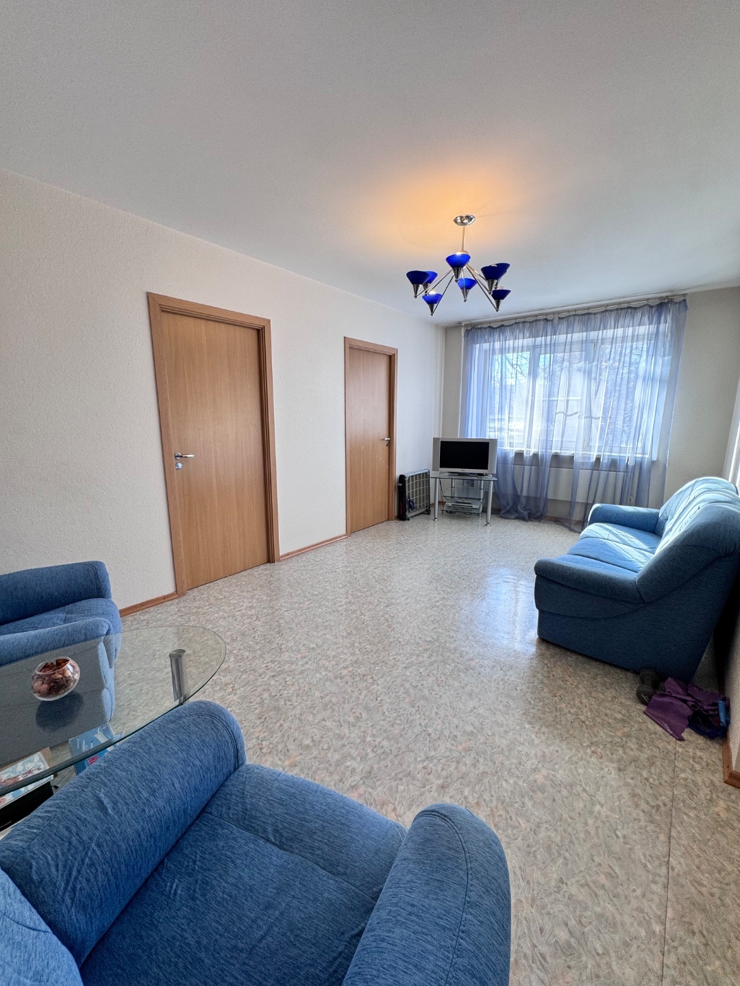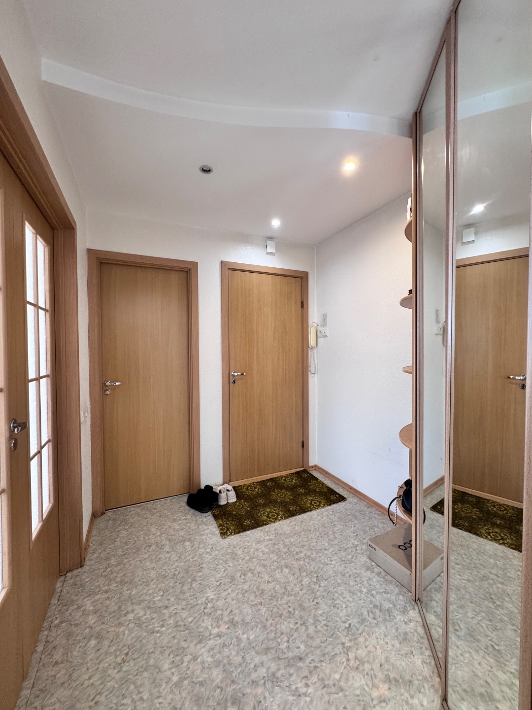 Выполнен качественный капитальный ремонт: заменена электропроводка и сантехника, полы залиты и выровнены, уложен линолеум, в санузле — кафельная плитка. Установлены современные радиаторы. Балкон застеклён и обшит.