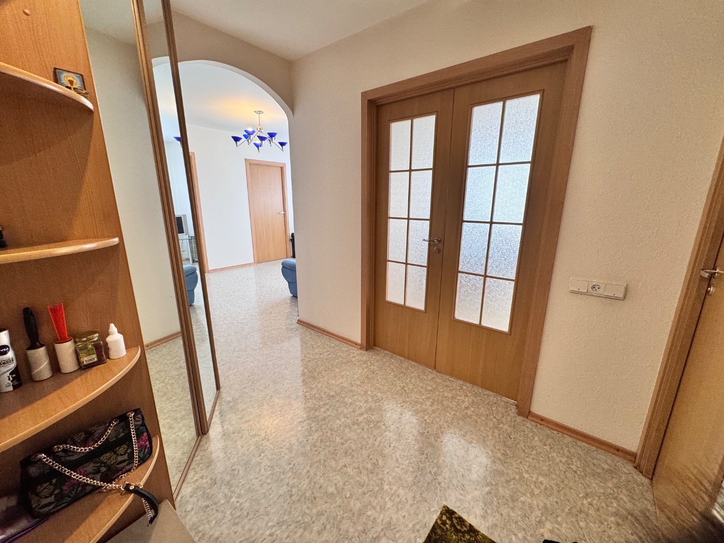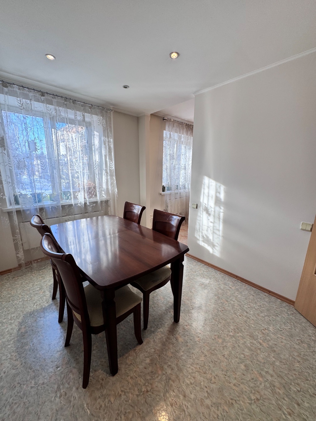 Квартира имеет продуманную перепланировку: Три жилые комнаты, увеличенная кухня-столовая и большой санузел создают максимум пространства.